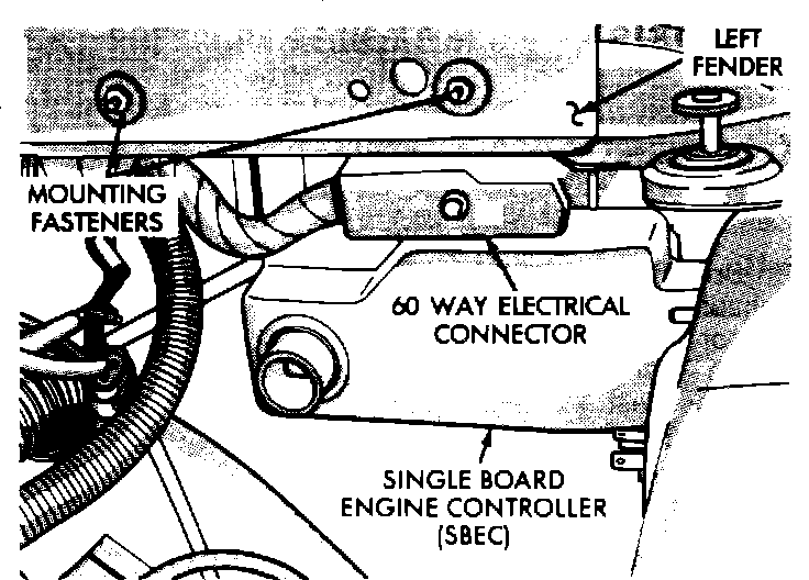 6. Place the new SBEC in the vehicle and connect the electrical connector.