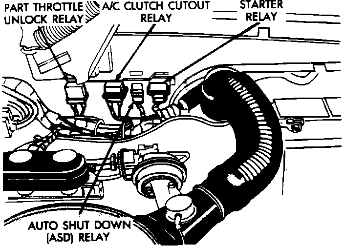 The relays are located on the left inner fender panel inside the engine compartment.