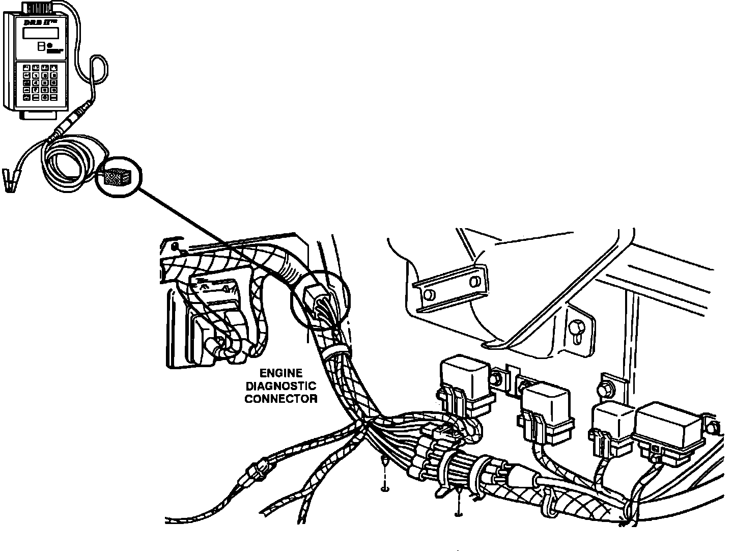 1. Connect the scan tool to the diagnostic connector located in the engine compartment near the Single Board Engine Controller (SBEC).