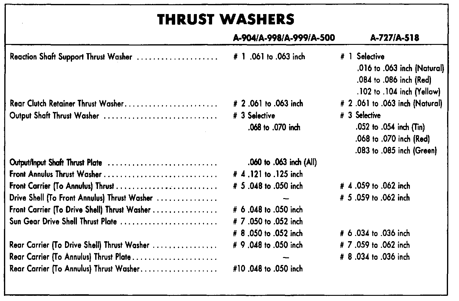 Thrust Washers, A-904/A-998/A-999/A-500/A-727/A-518: