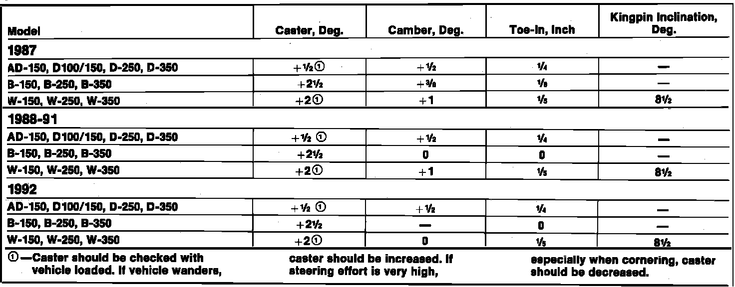 Wheel Alignment Specifications: