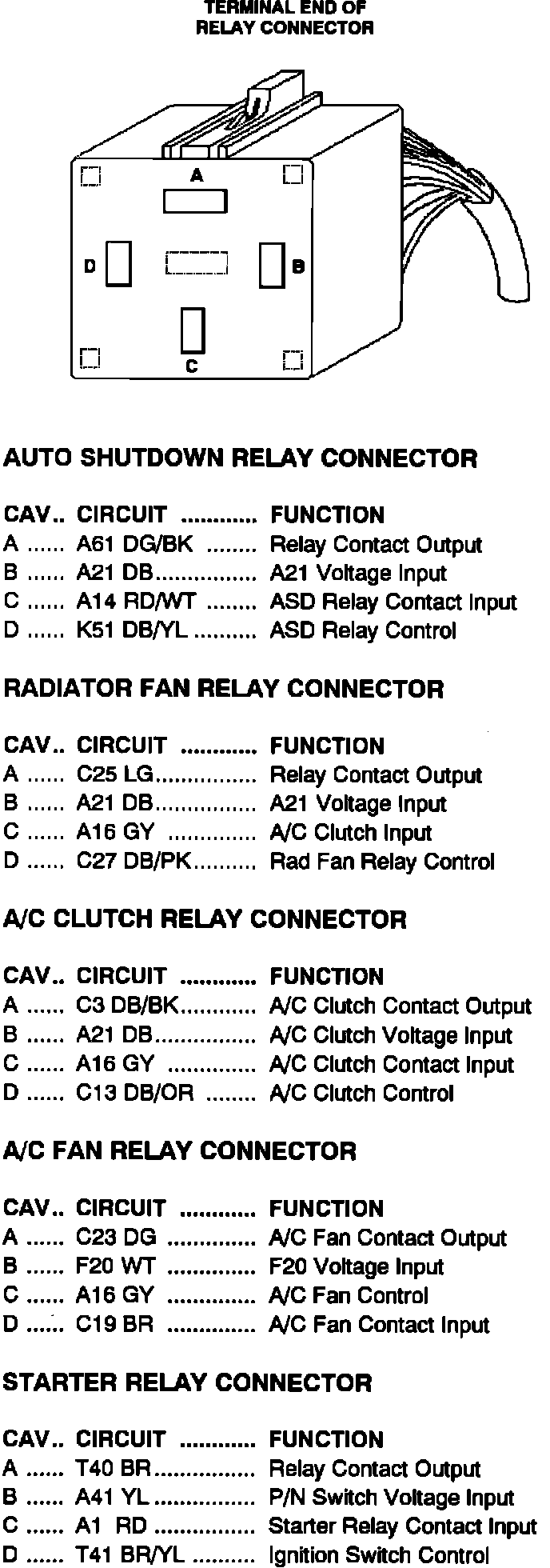 Relay Connector/Circuit Identification: