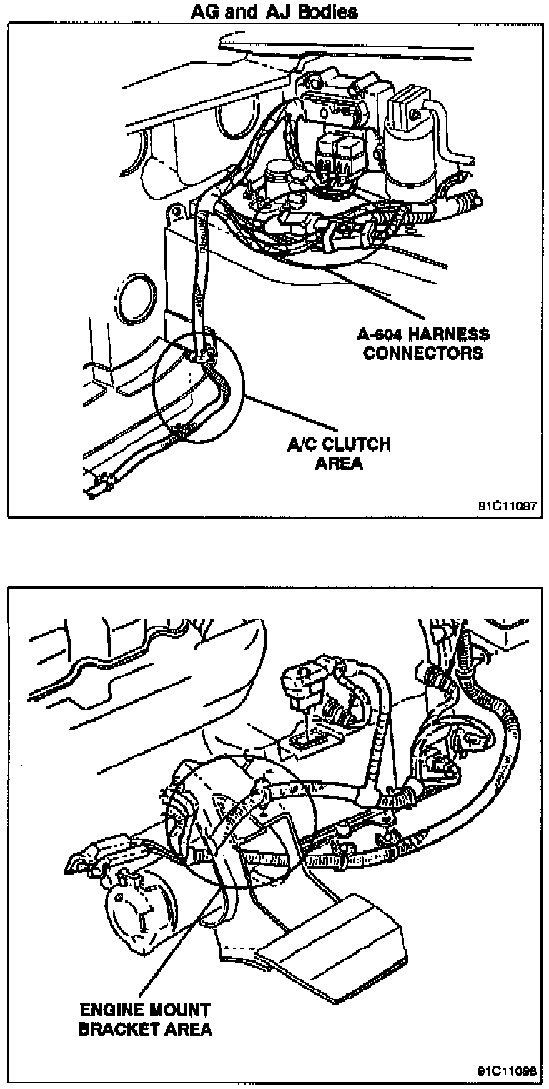 e. Pay particular attention to potential hazards to the harness as it travels from the EATX controller to the transmission, such as the area where the harness is routed near the A/C clutch on the 3.OL engine.