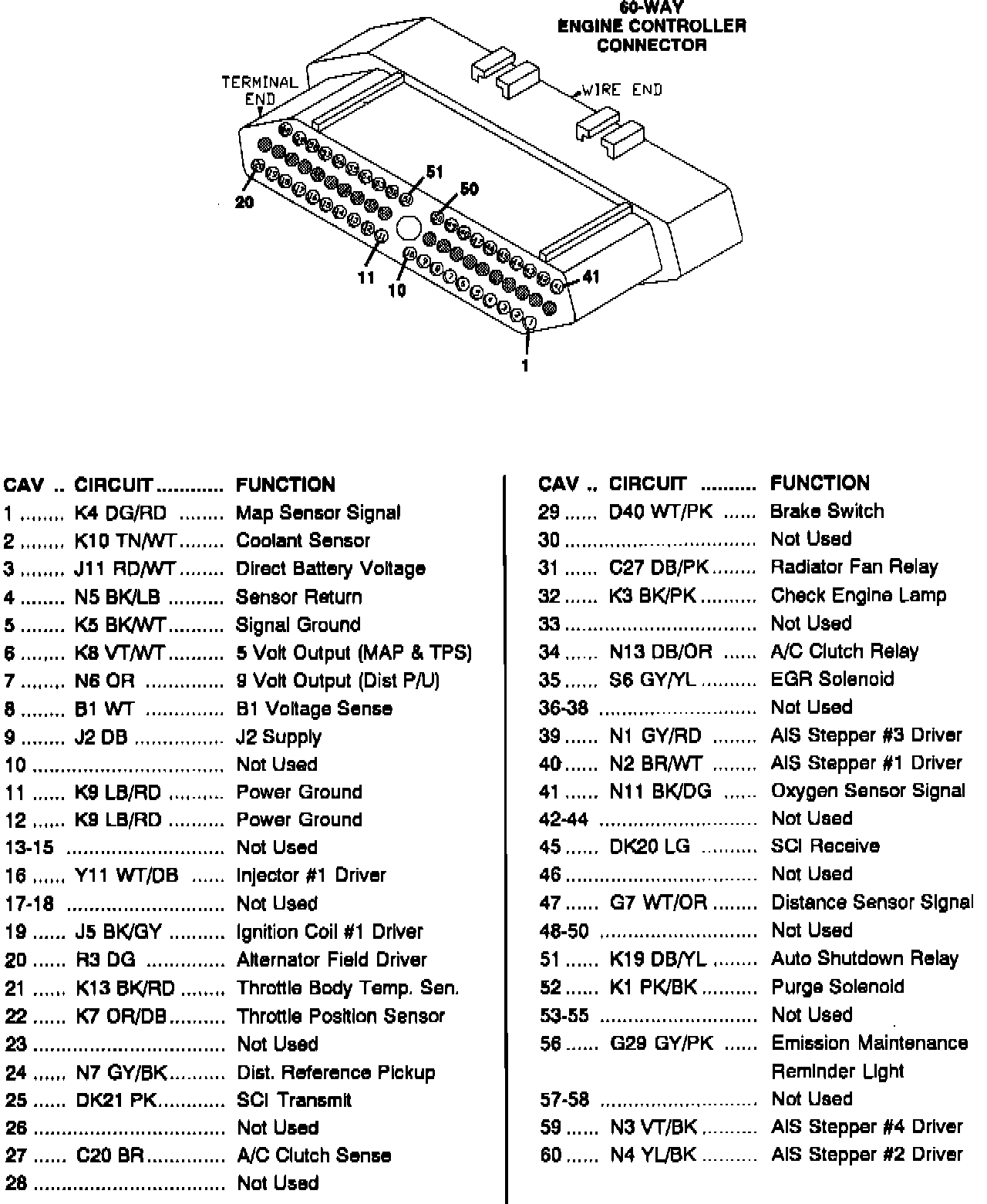 60-Way Connector Pinout Identification: