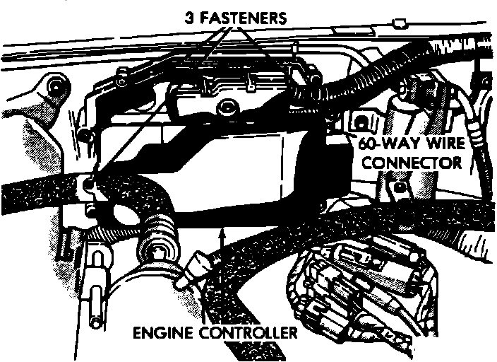 3. Remove 60-Way electrical connector from the SBEC. Remove SBEC.