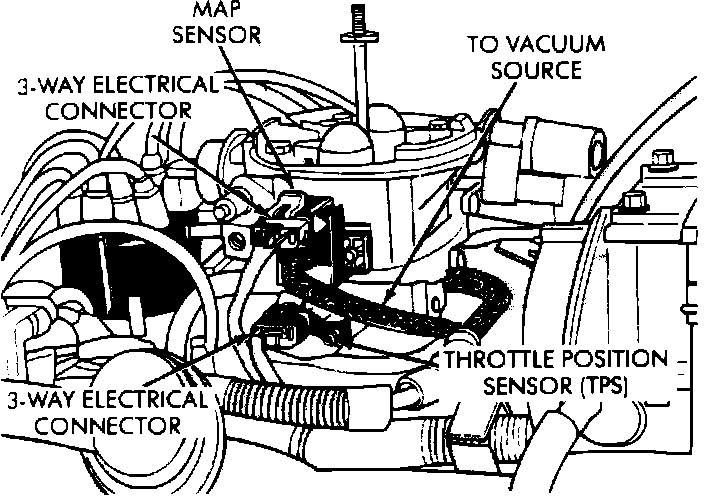 4. Reverse the above procedure for installation. Check the vacuum hose and electrical connections to the sensor.
