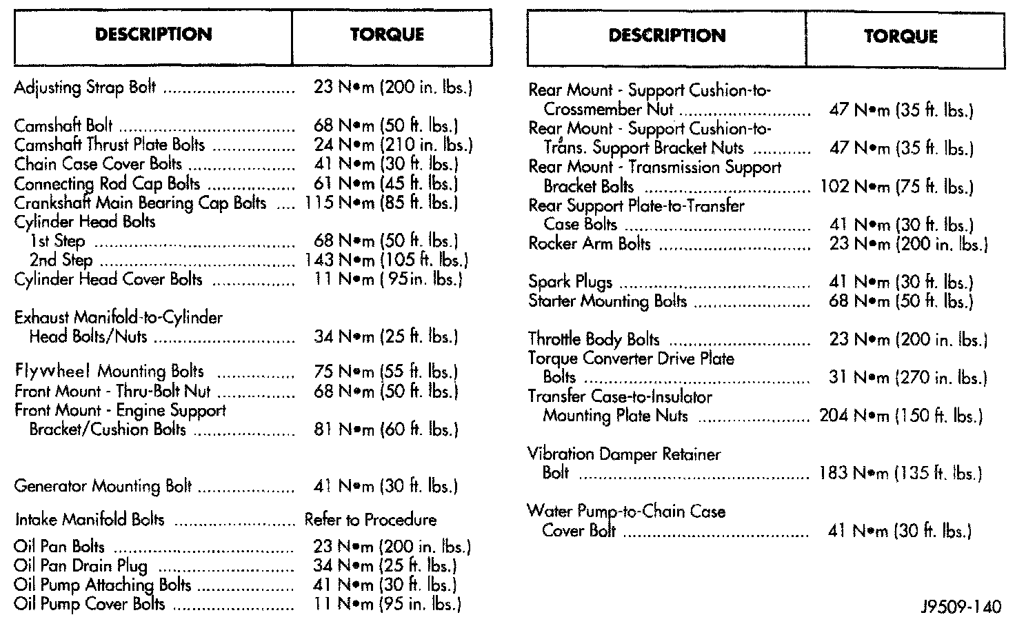 Tightening Specifications
