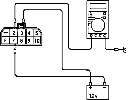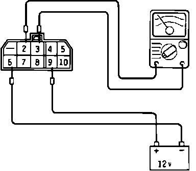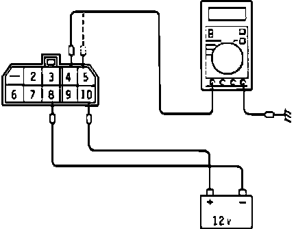 3. Connect terminals - and 8 with a jumper wire, and with the 12V source still connected measure the voltage present at terminals 4 and 5. Battery voltage should be pressent at both terminals if voltage is not present at both terminals replace the relay.