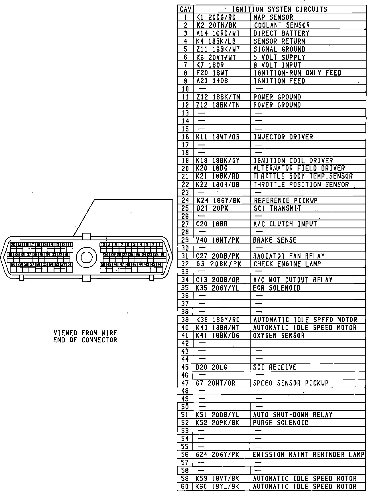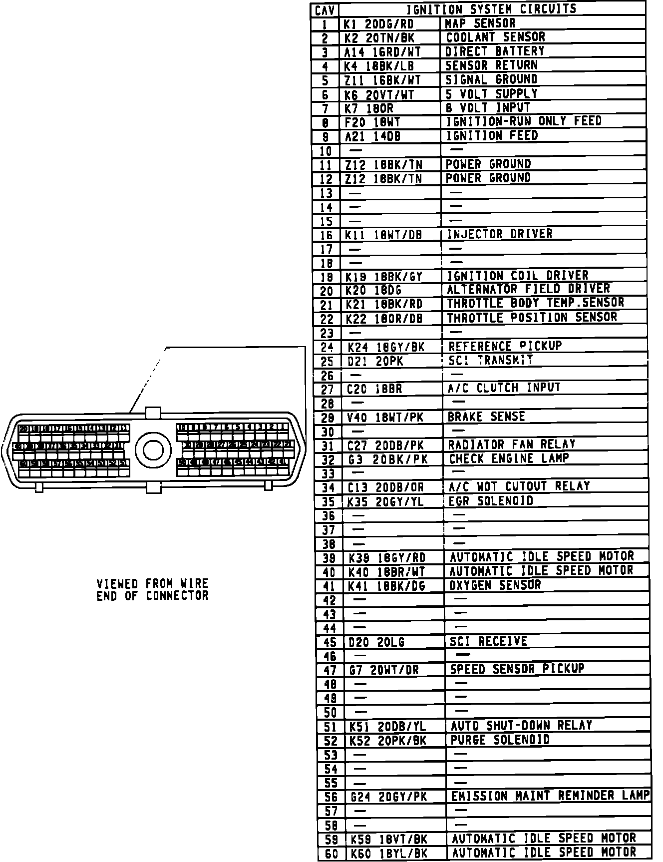 Engine Controller Connector Pin-out: