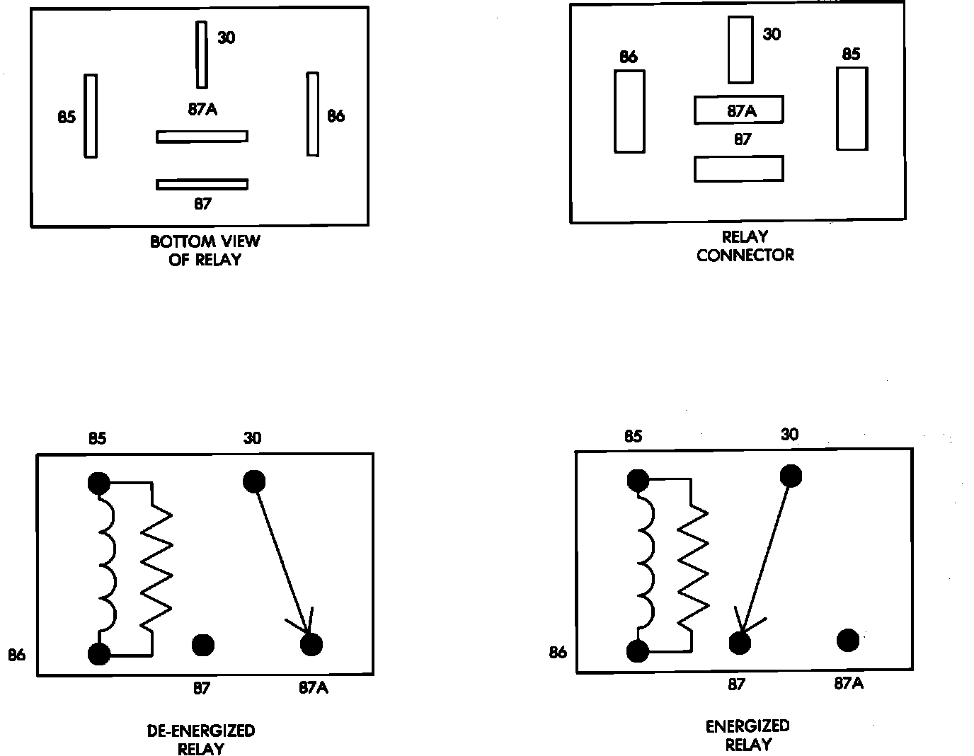 ^ Terminal number 87A is connected (a circuit is formed) to terminal 30 in the de-energized (normally OFF) position.