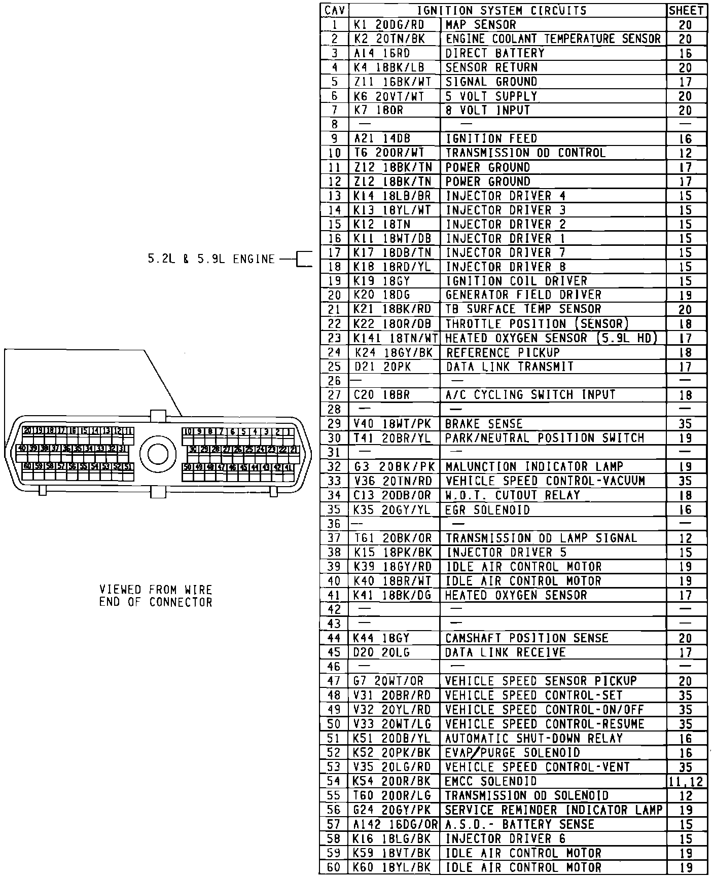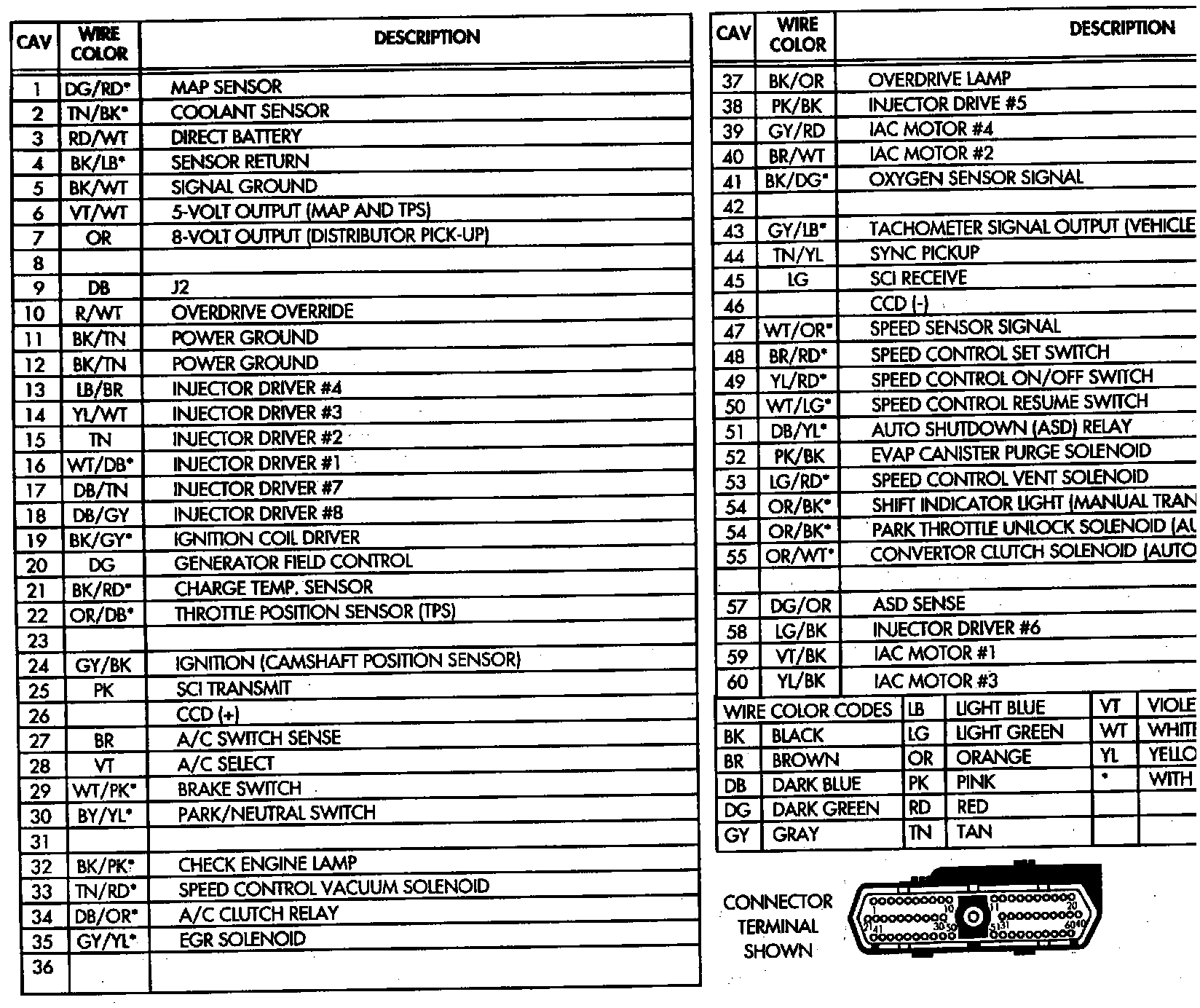PCM Connector Pinout: