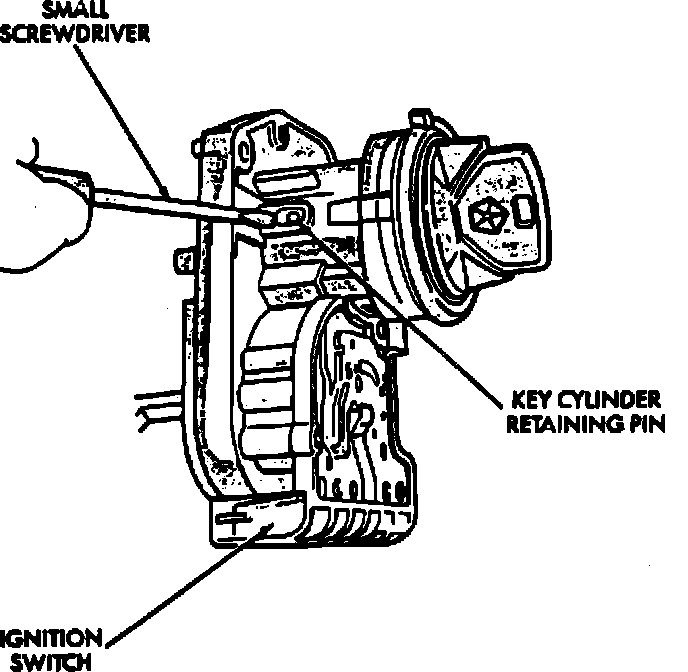 b. Using a small screwdriver, depress key cylinder retaining pin flush with cylinder surface.