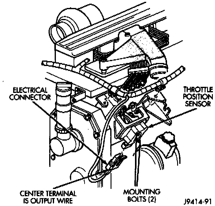 NOTE: The Throttle Position Sensor (TPS) is used only on vehicles equipped with an automatic transmission if equipped with a diesel engine. It is not used with the manual transmission.Throttle Position Sensor Location:
