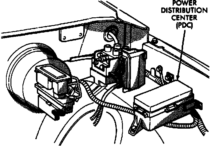 The Auto Shutdown (ASD) relay is located inside the power distribution center (PDC). The power distribution center is located at the left-hand rear corner of the engine compartment. Refer to PDC cover for exact placement of the relay within the PDC assembly.