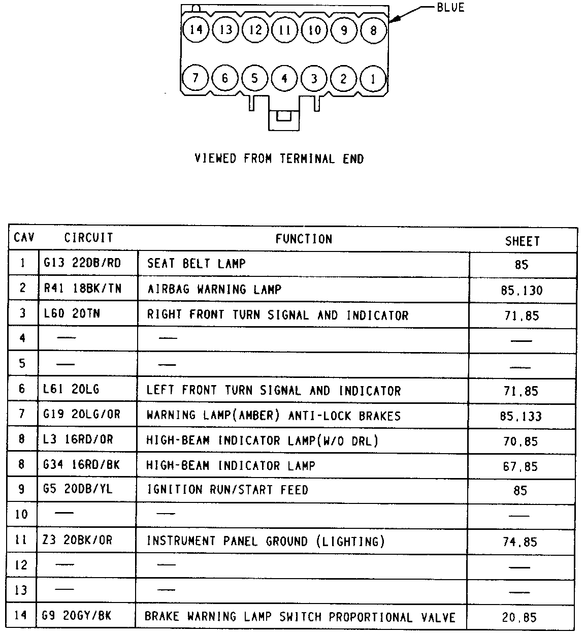 Warning Lamp Center Connector: