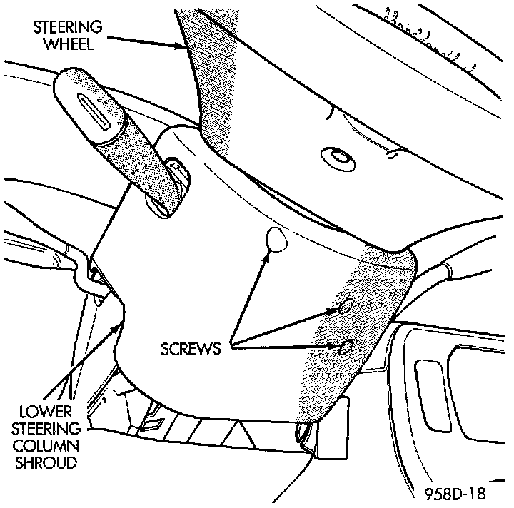 4. Remove screws holding steering column shrouds and remove lower shroud.