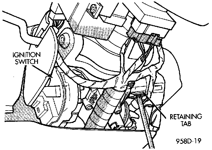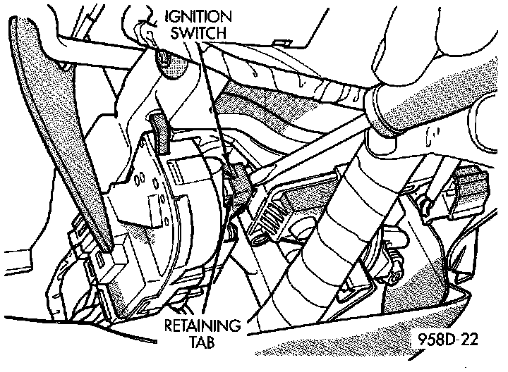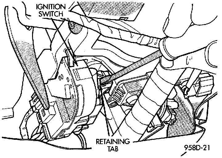7. Depress retaining tab, or and gently pry ignition switch from steering column.