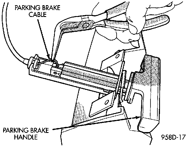 3. Remove parking brake release cable from handle.