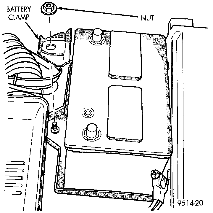 4. Remove nut and clamp holding battery to battery tray (Fig. 31).