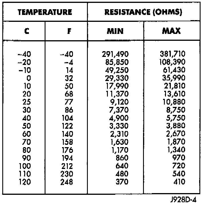 Sensor Resistance Chart (OHMS):