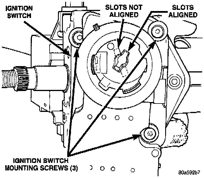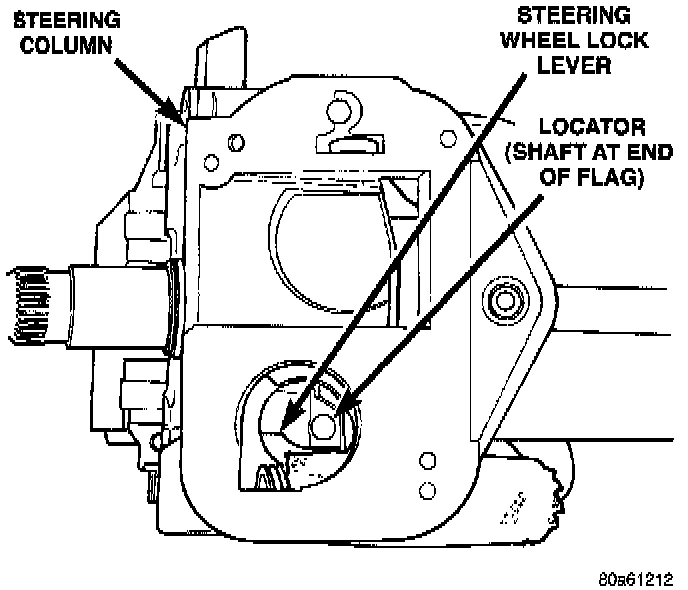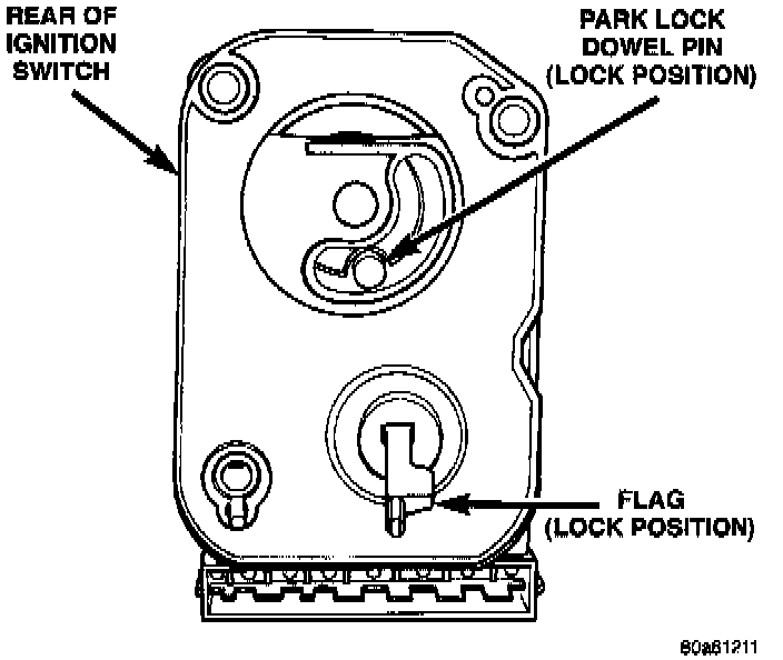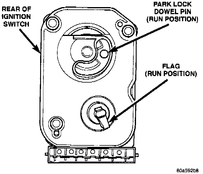 7. Place ignition switch in LOCK position. The switch is in the LOCK position when column lock flag is parallel to ignition switch terminals.