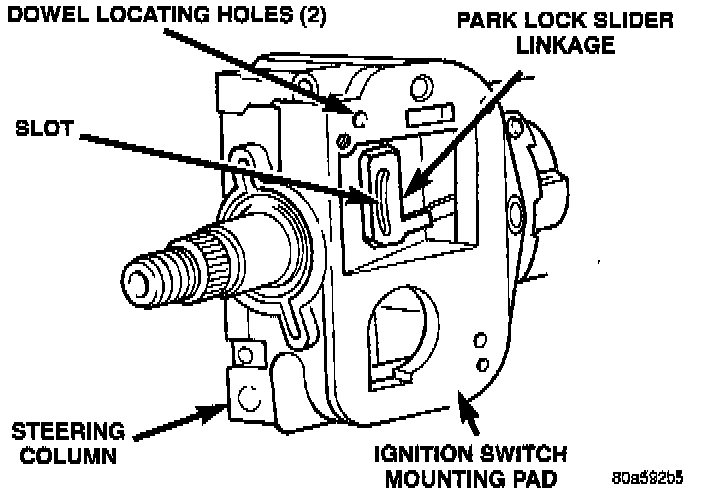 a. Automatic Transmission Only: Be sure park lock dowel pin on rear of ignition switch enters slot in park lock slider linkage.