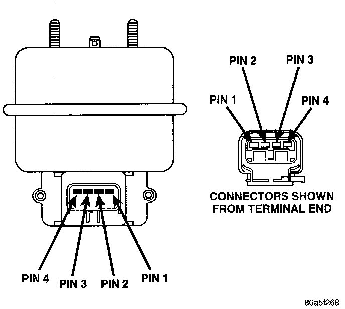 5. Connect a small gauge jumper wire between the disconnected servo harness 4-way connector pin-3, and pin-3 on the servo. Check for battery voltage at pins-1, 2 and 4 of the servo. If battery voltage is not at these pins, replace the servo.