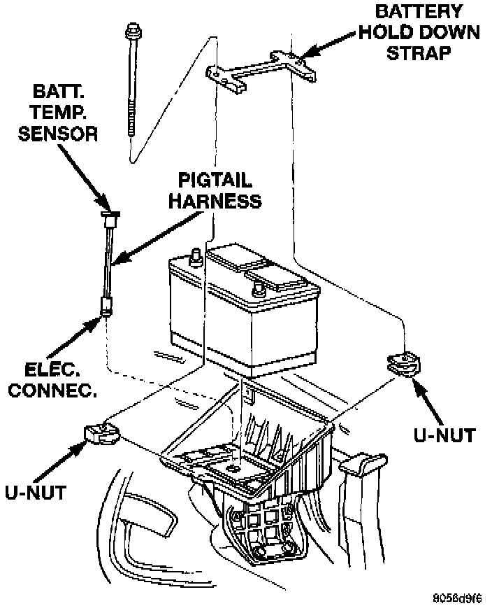 The battery temperature sensor is located under the vehicle battery and is attached (snapped into) a mounting hole on battery tray On models equipped with a diesel engine (dual batteries), only one sensor is used. The sensor is located under the battery on drivers side of vehicle.