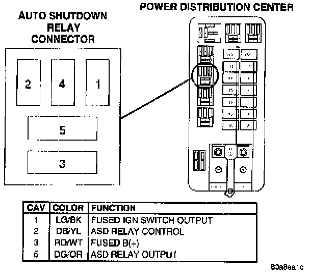 Auto Shutdown Relay Connector, Power Distribution Center:
