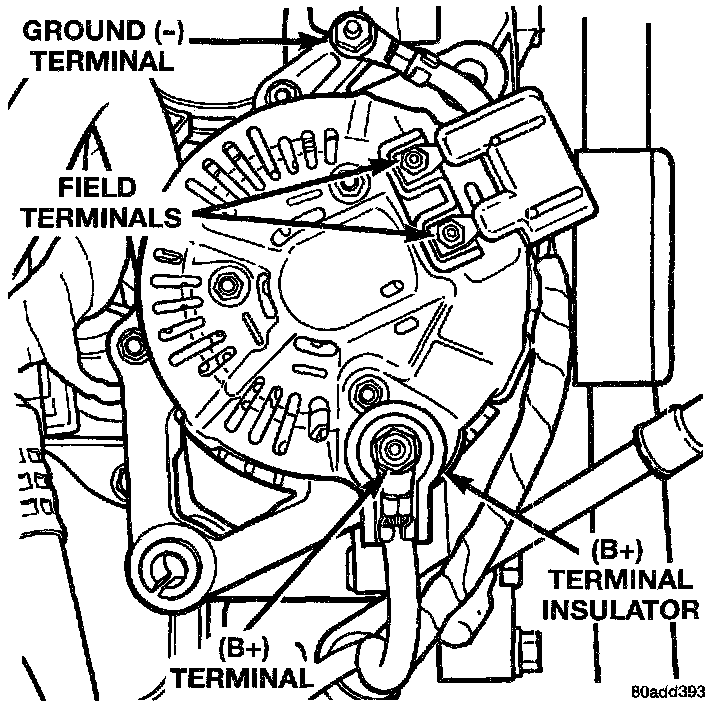 REMOVALWARNING: DISCONNECT NEGATIVE CABLE FROM BATTERY BEFORE REMOVING BATTERY OUTPUT WIRE (B+ WIRE) FROM GENERATOR. FAILURE TO DO SO CAN RESULT IN INJURY OR DAMAGE TO ELECTRICAL SYSTEM.