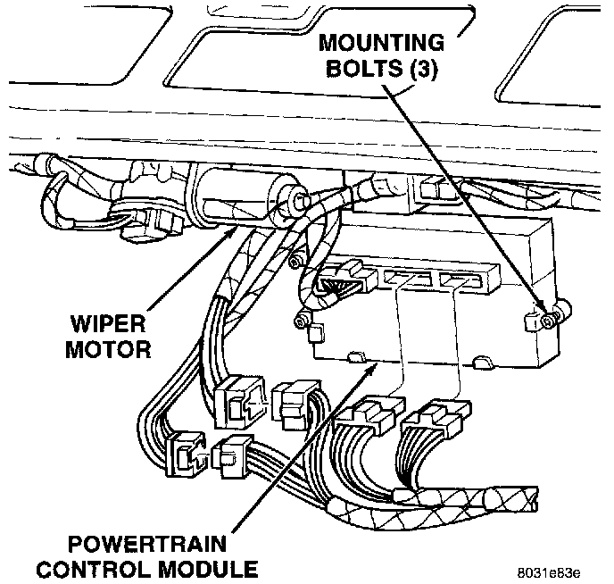 1. Verify that the three 32-way electrical connectors are fully inserted into the connector of the Powertrain Control Module (PCM) (Fig. 19).