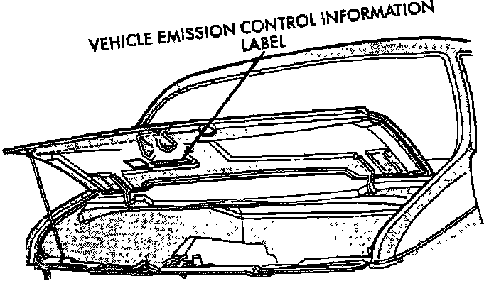 The label combines both emission control information and vacuum hose routing. This label is located in the engine compartment in front of the radiator and contains the following: