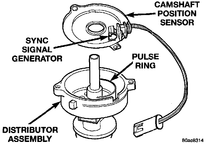 All engines are equipped with a conventional camshaft driven mechanical distributor containing a shift driven distributor rotor. The distributor is equipped with the camshaft position (fuel sync) sensor. This sensor provides fuel injection synchronization and cylinder identification.