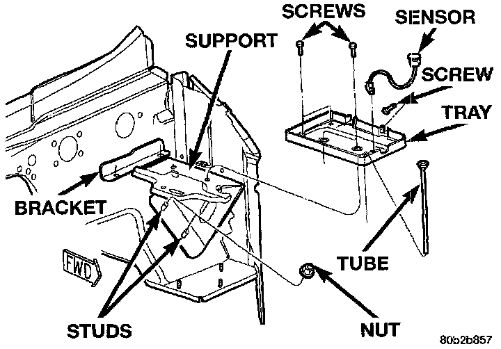 1. The sensor is located under the battery and is attached to the battery tray. A two-wire pig-tail harness is attached directly to the sensor. The opposite end of this harness connects the sensor to the engine wiring harness.