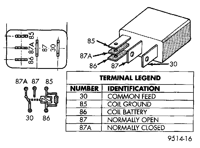 - Terminal number 86 supplies voltage to the coil side of the relay.