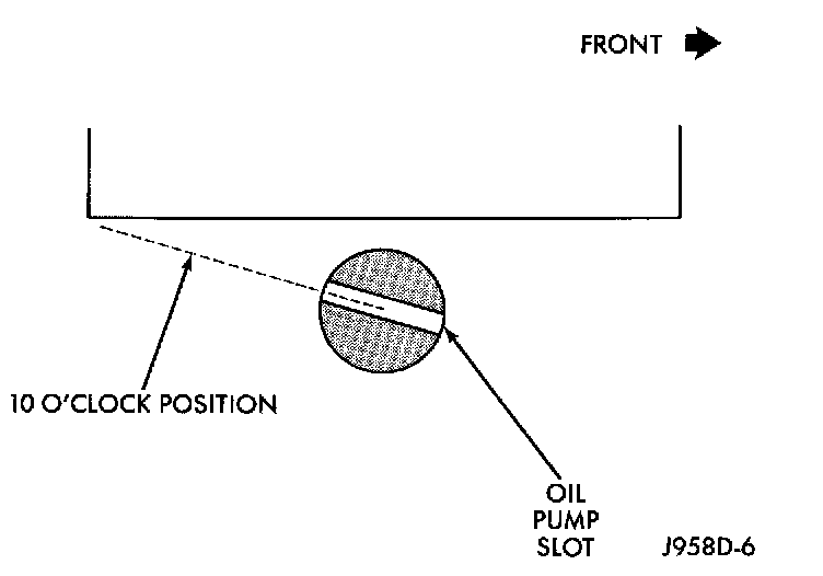 2. Check position of slot on oil pump gear. It should be just slightly before (counterclockwise of) 10 o'clock position. If not, place a flat blade screwdriver into oil pump gear and rotate it into proper position.