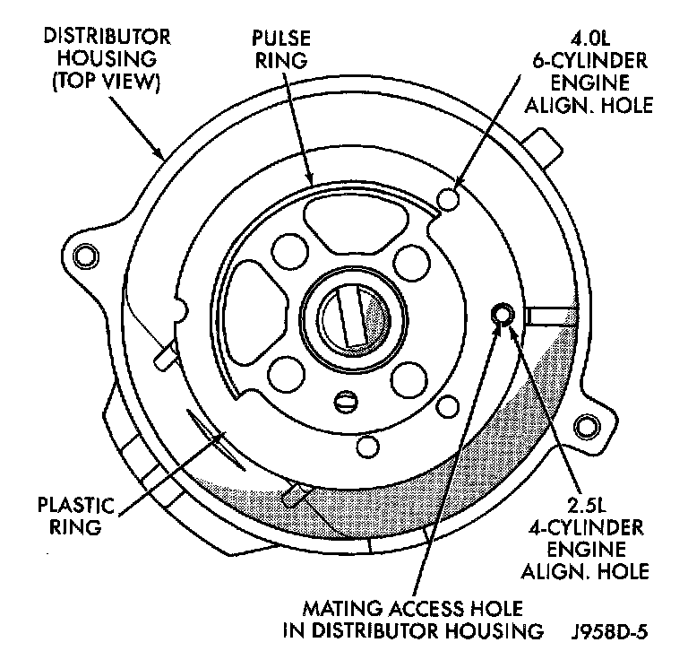 The distributor contains an internal oil seal that prevents oil from entering the distributor housing. The seal is not serviceable.Plastic Alignment Pin: