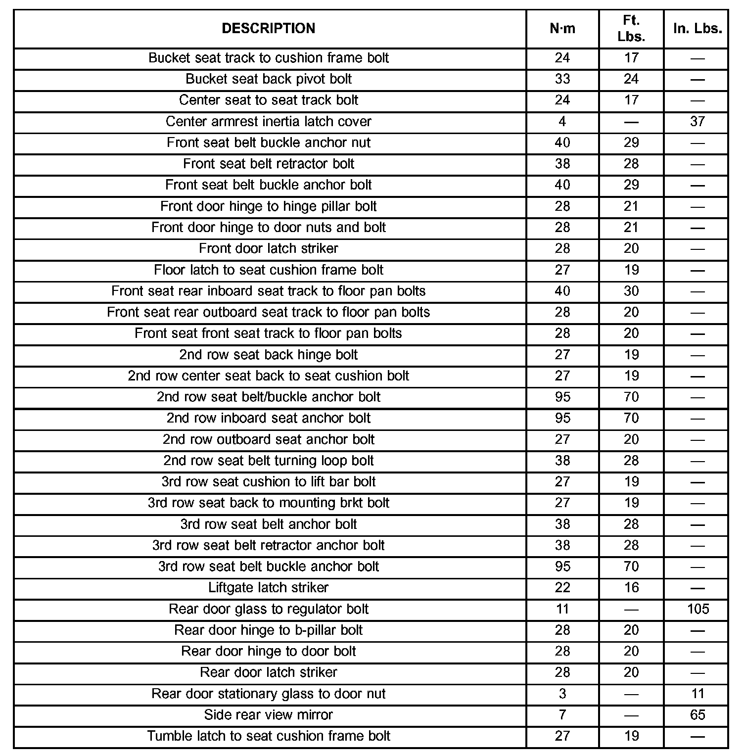 Torque Specifications: