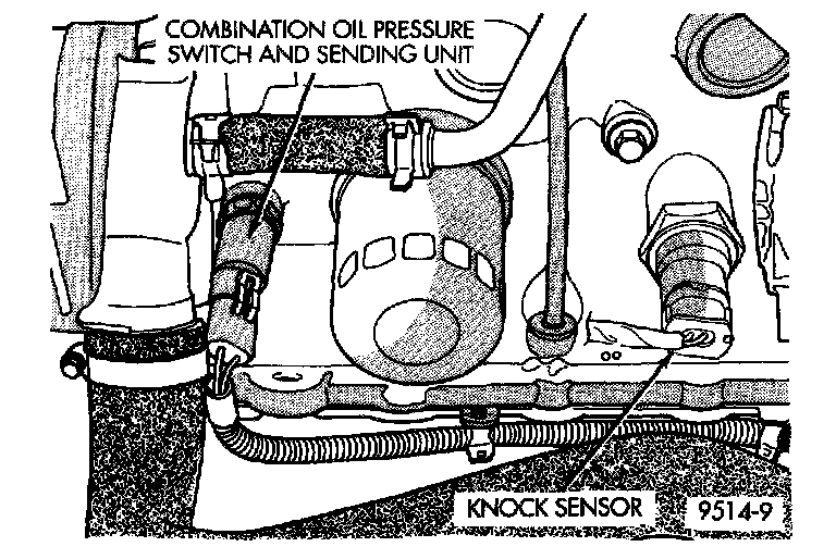 The knock sensor threads into the side of the cylinder block in front of the starter. When the knock sensor detects a knock in one of the cylinders, it sends an input signal to the PCM. In response, the PCM retards ignition timing for all cylinders by a scheduled amount.
