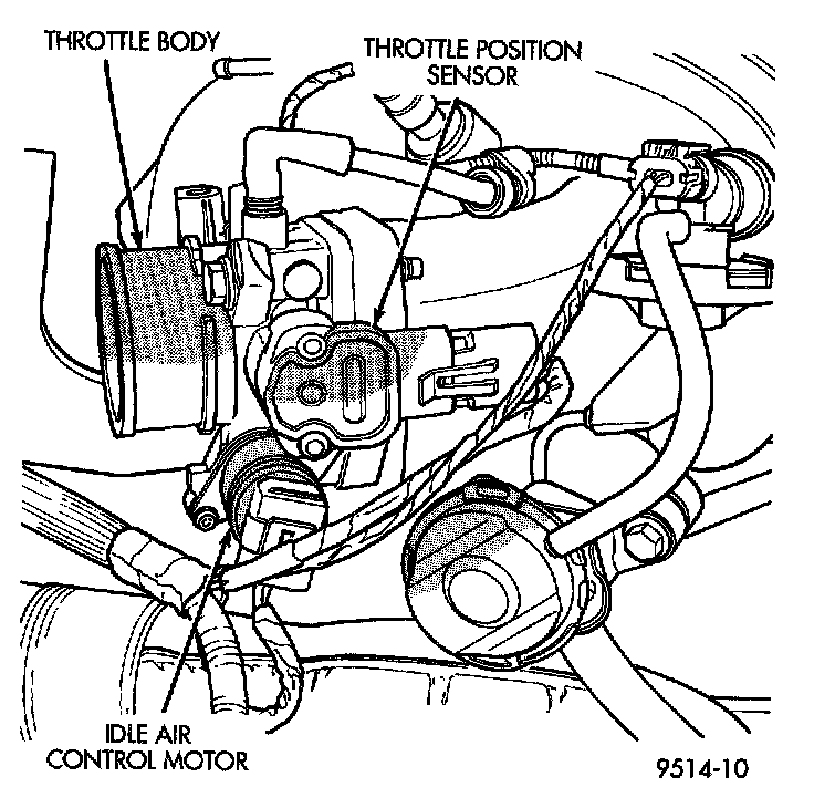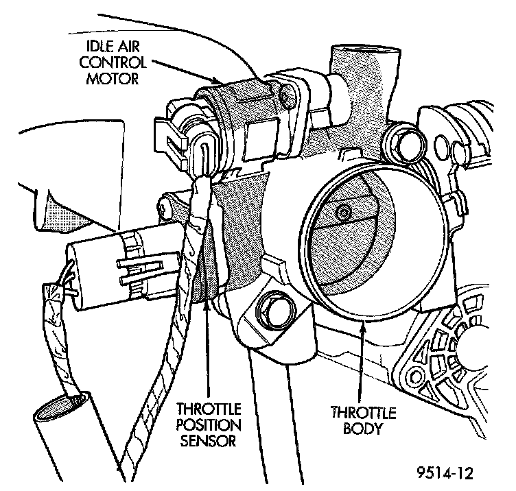 The PCM supplies approximately 5 volts to the TPS. The TPS output voltage (input signal to the PCM) represents the throttle blade position. The TPS output voltage to the PCM varies from approximately 0.5 volt at minimum throttle opening (idle) to 4 volts at wide open throttle. Along with inputs from other sensors, the PCM uses the TPS input to determine current engine operating conditions and adjust fuel injector pulse width and ignition timing.