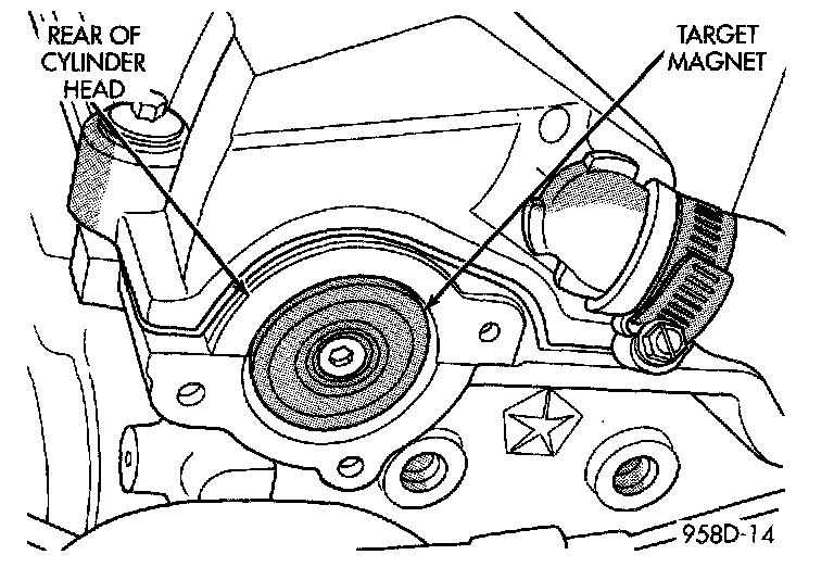The distance between the bottom of sensor and the camshaft sprocket is critical to the operation of the system. When servicing the camshaft position sensor, refer to the 3.3L and 3.8L Multi-Port Fuel Injection-Service Procedures.