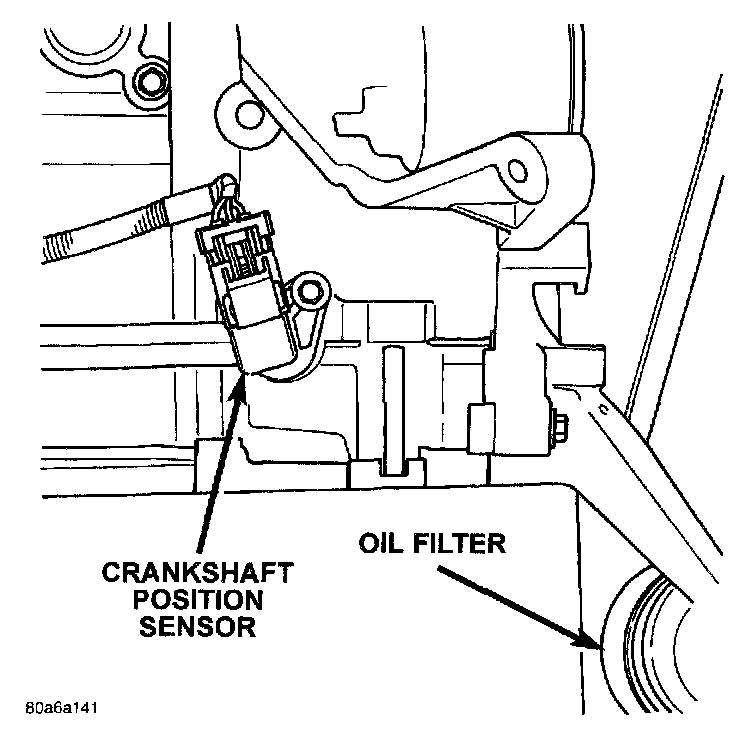 The crankshaft position sensor mounts to the engine block behind the generator, just above the oil filter.