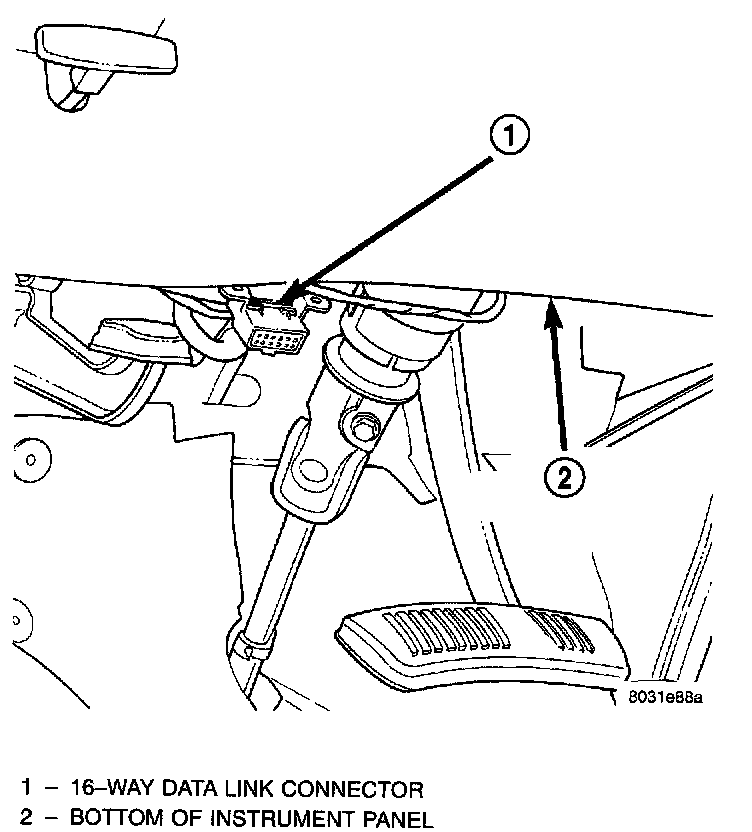 1. Locate the dark green program enable wire connected to the terminal in cavity 1 of the 16-way data link connector under the left side of the instrument panel.
