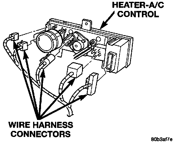 7. Unplug the wire harness connectors from the back of the heater-A/C control.