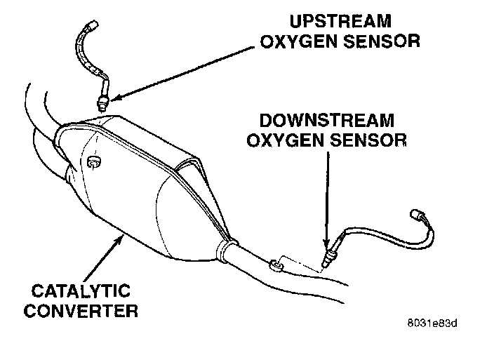 The downstream heated oxygen sensor threads into the outlet end of the catalytic convertor. The downstream heated oxygen sensor input is used to detect catalytic convertor deterioration. As the convertor deteriorates, the input from the downstream sensor begins to match the upstream sensor input except for a slight time delay. By comparing the downstream heated oxygen sensor input to the input from the upstream sensor, the PCM calculates catalytic convertor efficiency.