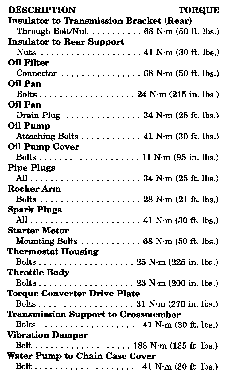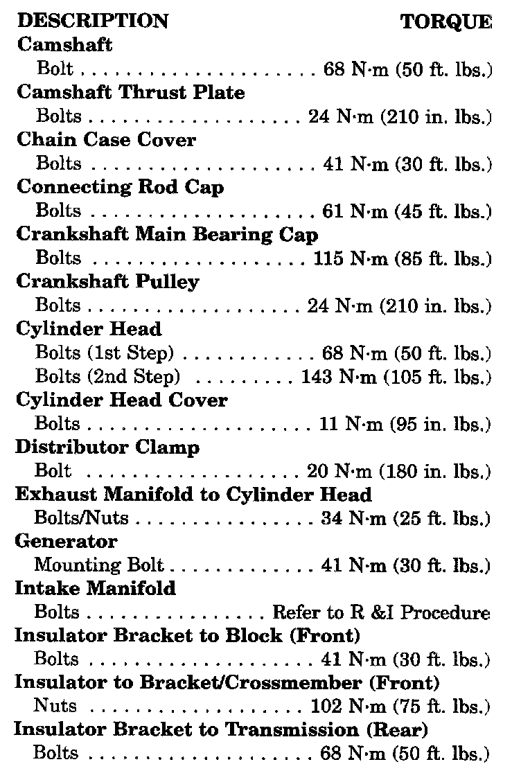 Tightening Specifications