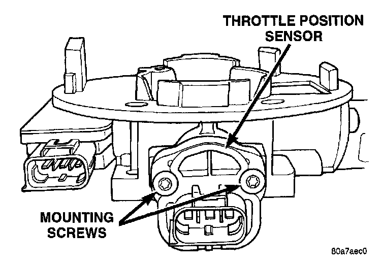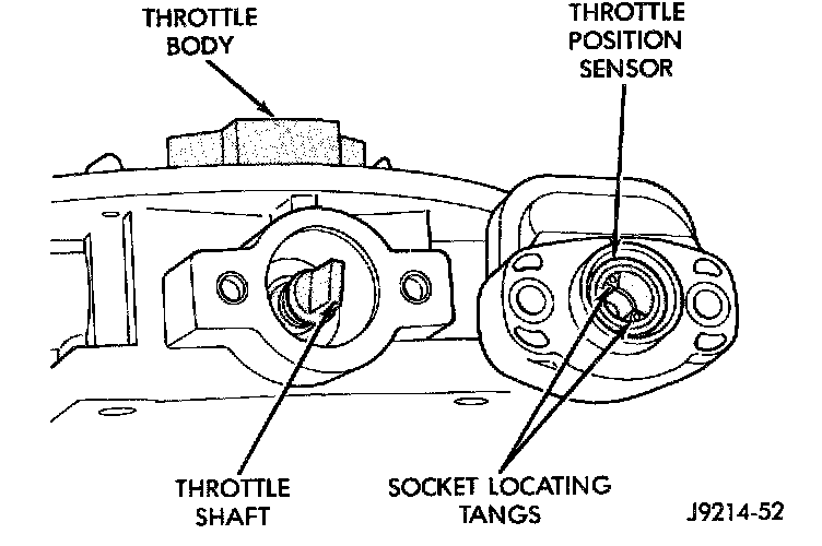 The throttle shaft end of the throttle body slides into a socket in the TPS. The TPS must be installed so that it can be rotated a few degrees. If the sensor will not rotate, install the sensor with the throttle shaft on the other side of the socket tangs. The TPS will be under slight tension when rotated.