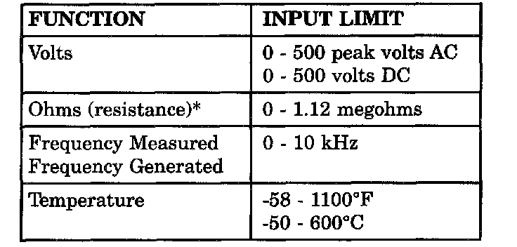 *Ohms cannot be measured if voltage is present. Ohms can be measured only in a non-powered circuit.