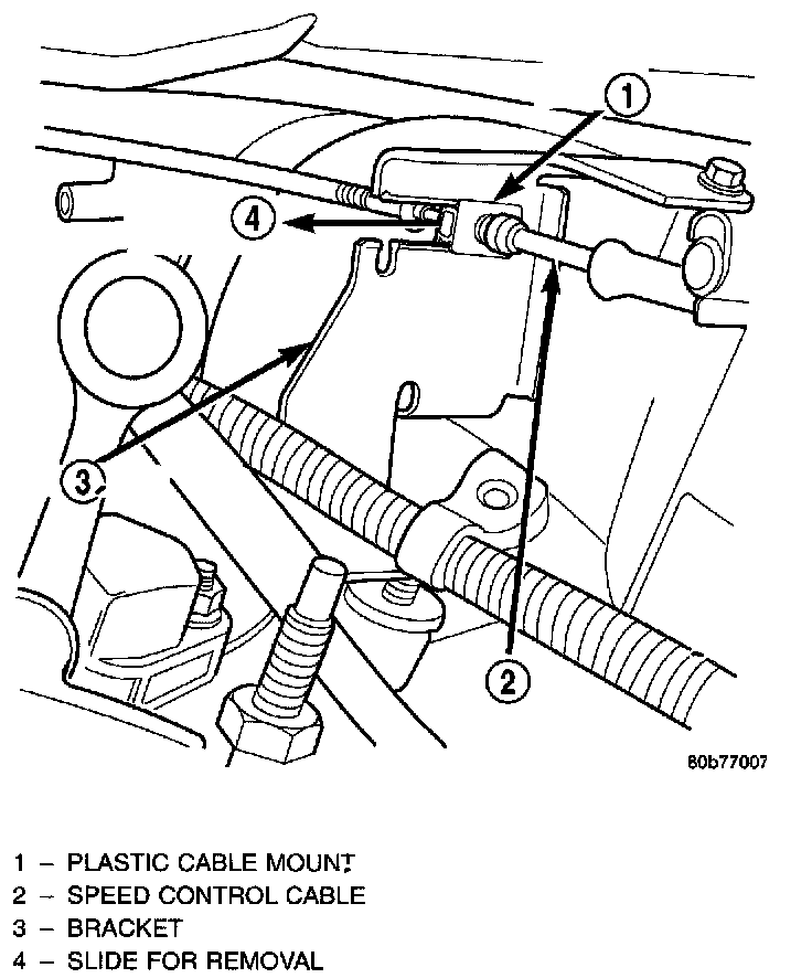 7. Slide speed control cable plastic mount towards passenger side of vehicle to remove cable from bracket.