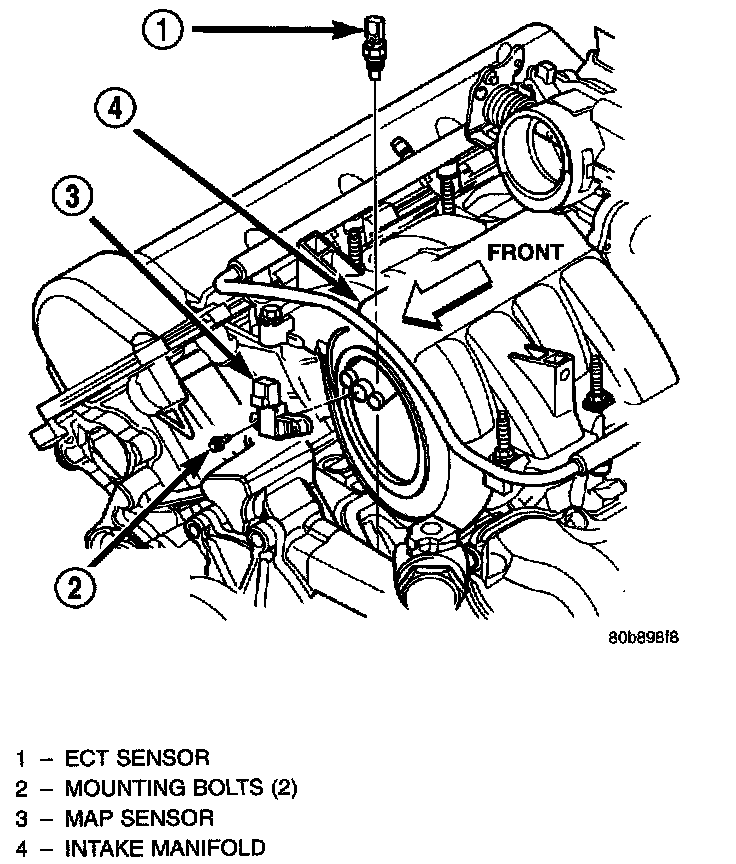 sensor is located near the front of the intake manifold.